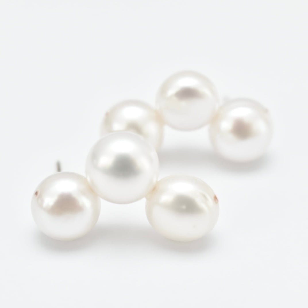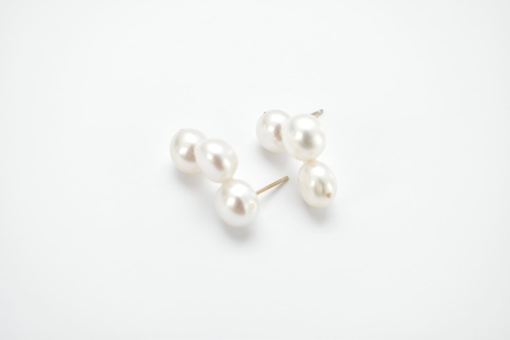 清楚さとモダンさを併せ持つ、遊び心がきいた大人のためのパールピアスです。