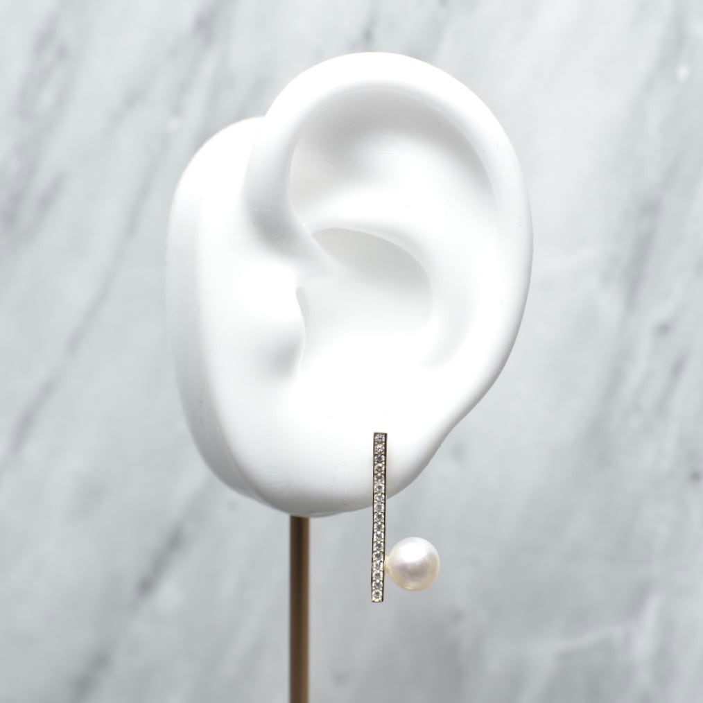 ジルコニアの縦ラインと上品なパールが美しく調和したピアス。