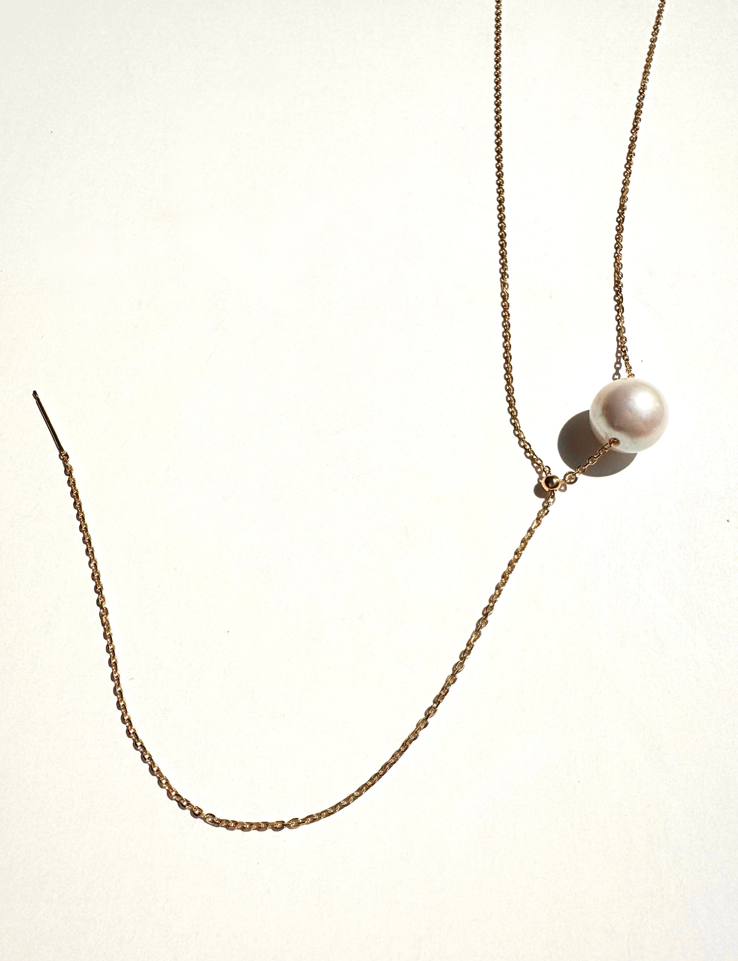 繊細なカットチェーンに、艶やかなパールを1粒あしらったシンプルなネックレス。